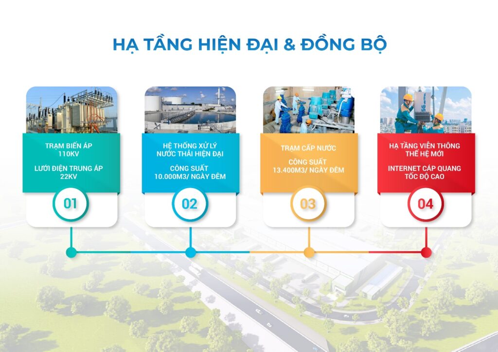 Hệ thống cấp điện : Trạm biến áp 110KV, đảm bảo nguồn điện và hệ thống hiện đại, ổn định.