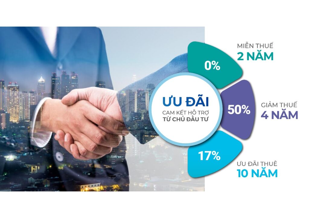 Miễn thuế thu nhập DN trong vòng .2 và giảm 50% cho 4 năm tiếp theo, các năm còn lại là 17% theo nghị định của chính phủ